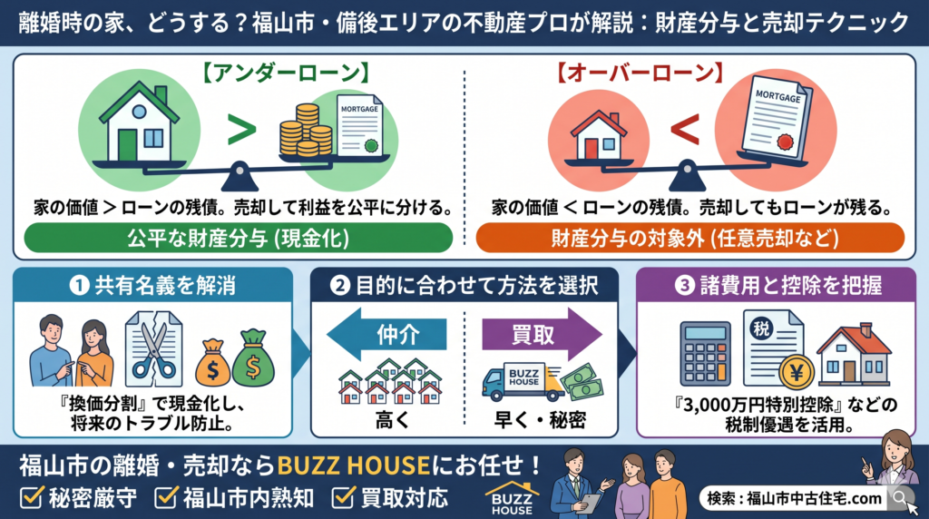 こんにちは!株式会社BUZZ HOUSE(バズハウス)のWebマーケティング担当、「Buzzブロくん」こと、福山市の不動産売買アドバイザーです! 売却事例において以外と多いのが離婚という人生の大きな転機。今後の生活や手続…