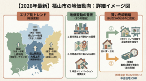 2026年の福山市は、中心部の高騰に加え、西部や東部の利便性の高いエリアへ需要が波及しています。しかし、エリアによっては「今が価格のピーク」という場所も少なくありません。