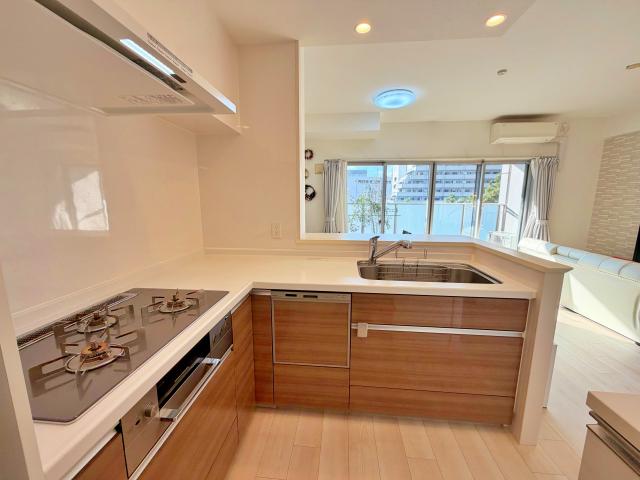 ◆白を基調とした清潔感あるダイニングキッチン♪対面式キッチンですので調理中もリビング・ダイニングを見渡せる開放的な空間となっております♪生活動線の良さが魅力(^^)
